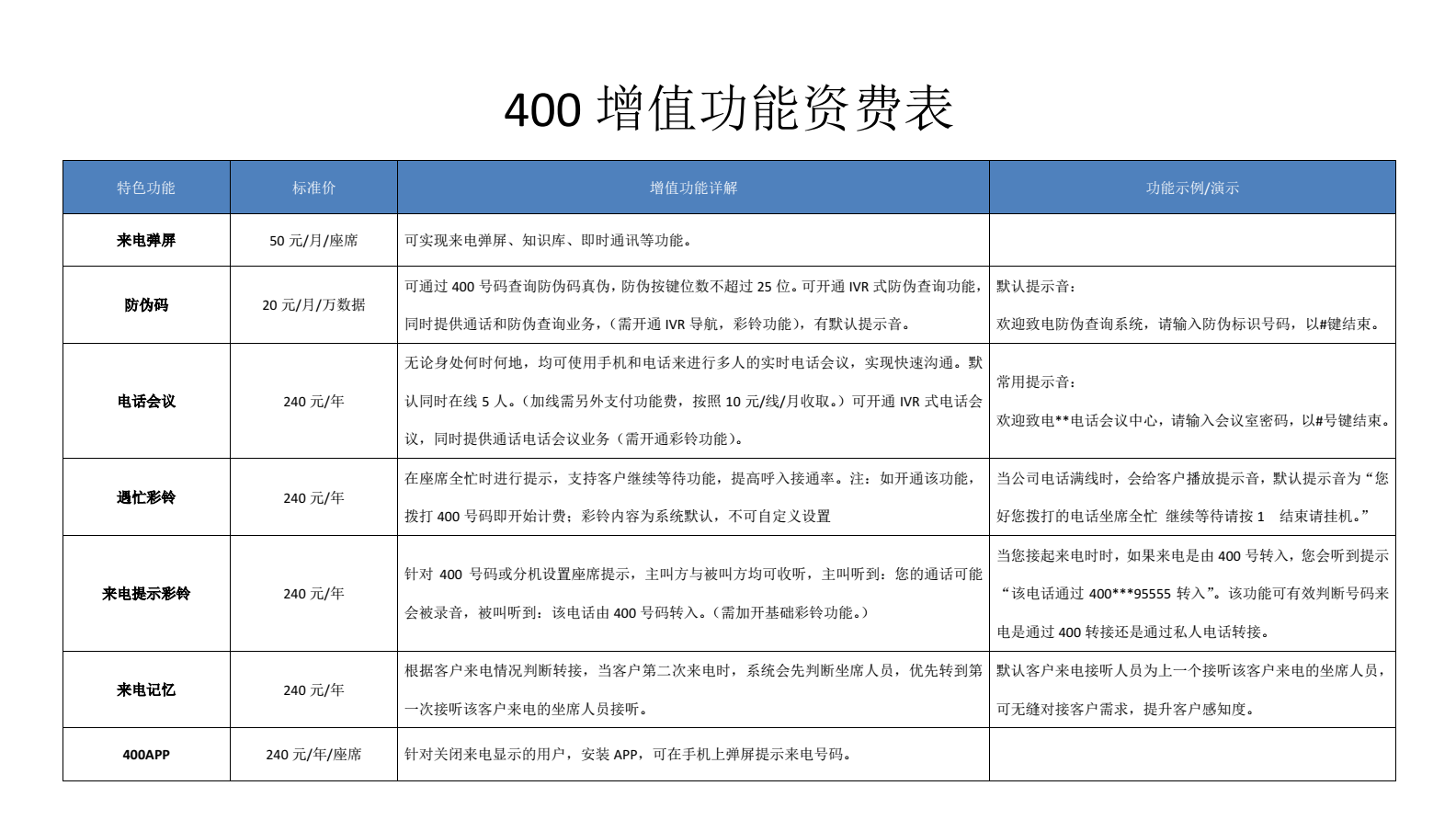 400電話增值業務就是除了基礎通話以外,為體現企業的專業、優質、高端等對外形象研發的增值功能,可以實現企業的播報宣傳、服務評價、智能綁定等個性化需求。